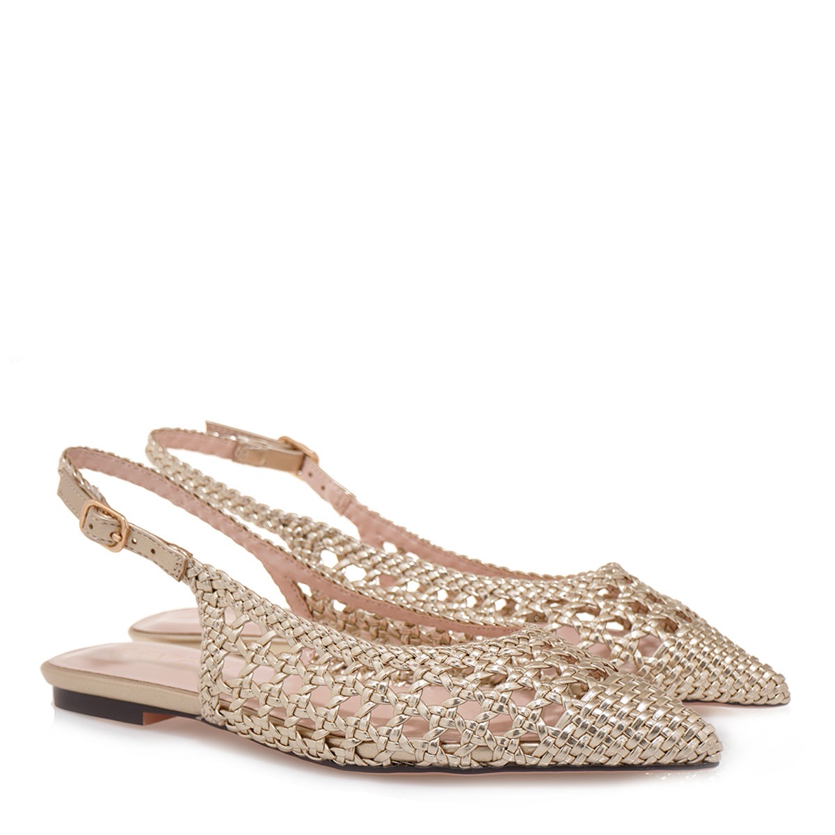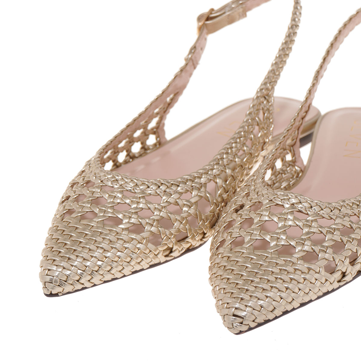 Seven 306 Γυναικεία Slingback Xρυσό Πλεχτό